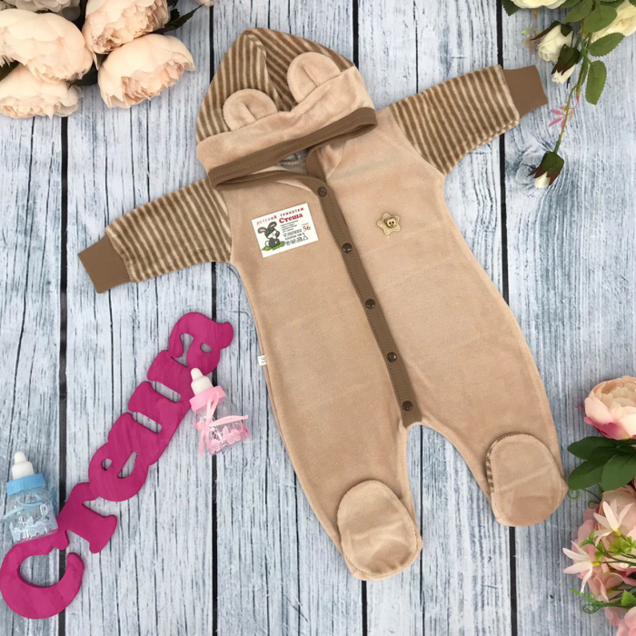 Теги: Купить велюровый комбинезон оптом от производителя. 225. Комбинезон с шапкой, 80% хлопок велюр, 20% ПЭ 56,62,68,74 цена,отзывы официальный сайт "Стеша Рубцовск"