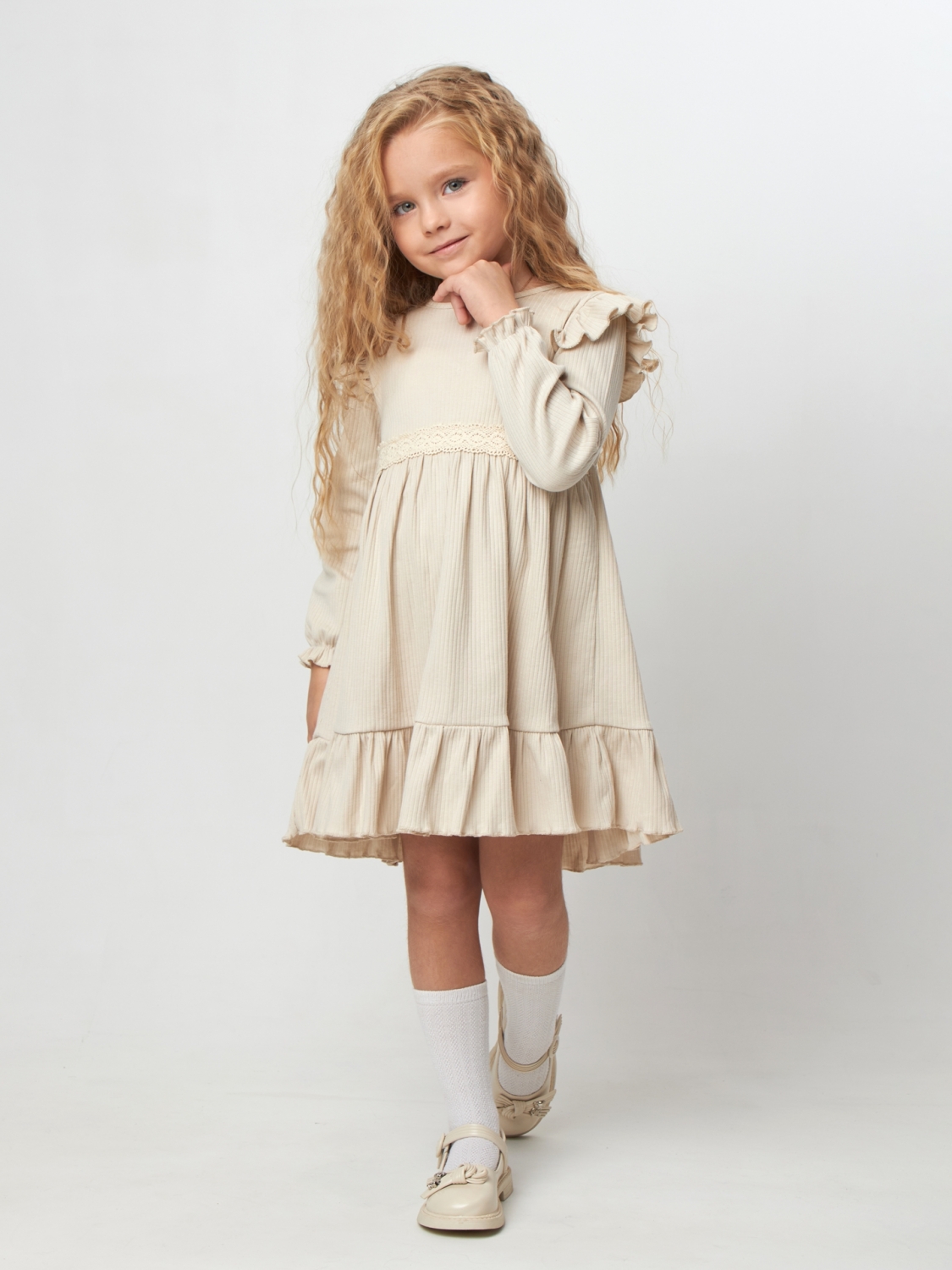 Теги: Платья детские из мулина оптом. 332. Платье детское из лапши, хлопок 100%, бежевое, р. 74,80,86,92 цена,отзывы официальный сайт "Стеша Рубцовск"